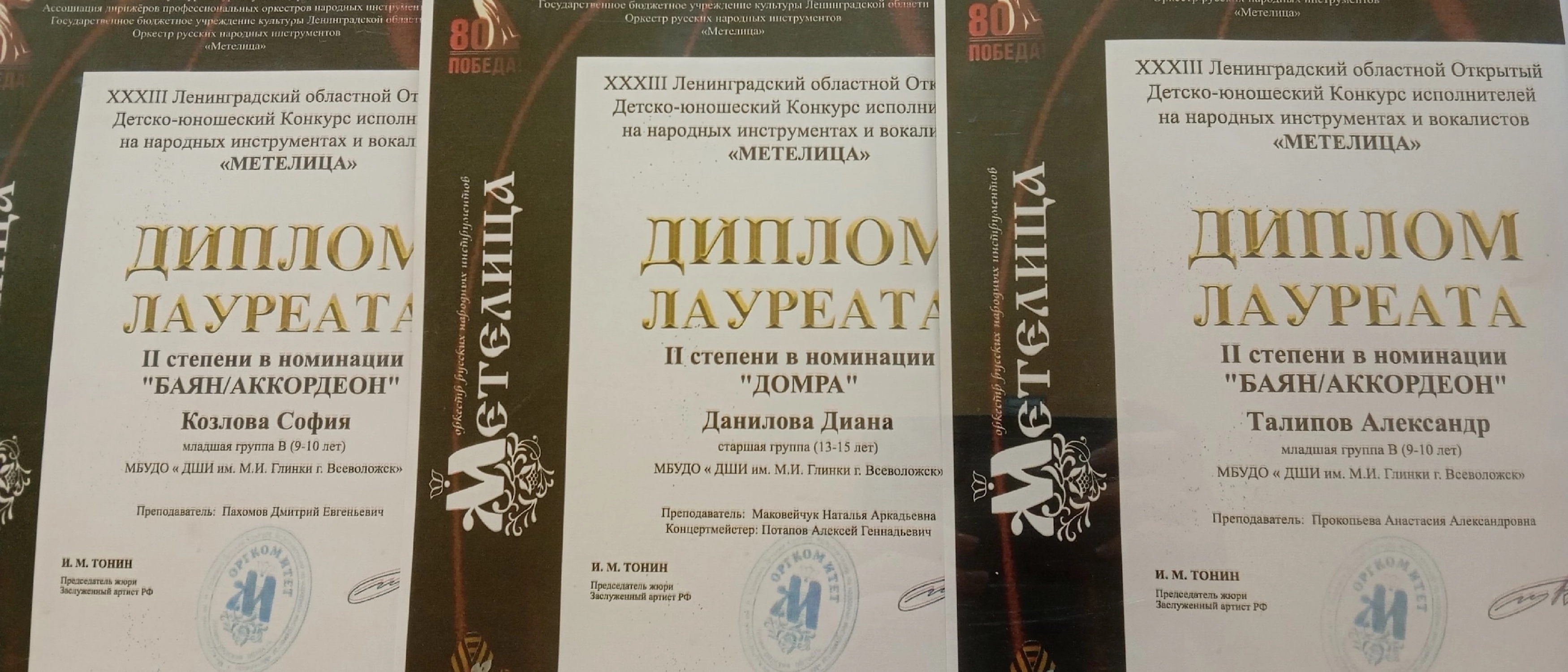 Поздравляем обучающихся народного отделения, отделения классической гитары и оркестрового отделения (ударные инструменты) с замечательными результатами на Областном конкурсе "Метелица"