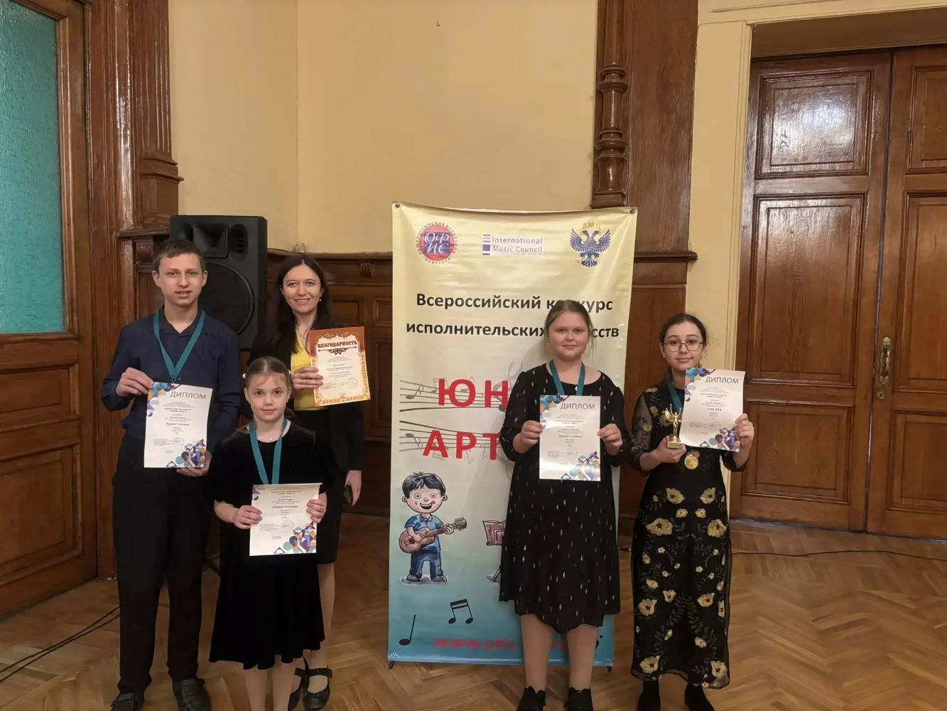 22 марта в зале Дома офицеров в Санкт-Петербурге проходил Всероссийский конкурс исполнительских искусств «ЮНЫЙ АРТИСТ». Поздравляем Дёмину Елизавету - ГРАН-ПРИ, Бедину Софию - лауреат 1 степени, Потанину Наталью - лауреат 1 степени, Потанина Михаила - лауреат 1 степени и преподавателя Потанину М.В. Желаем дальнейших творческих успехов, новых свершений и побед!!!