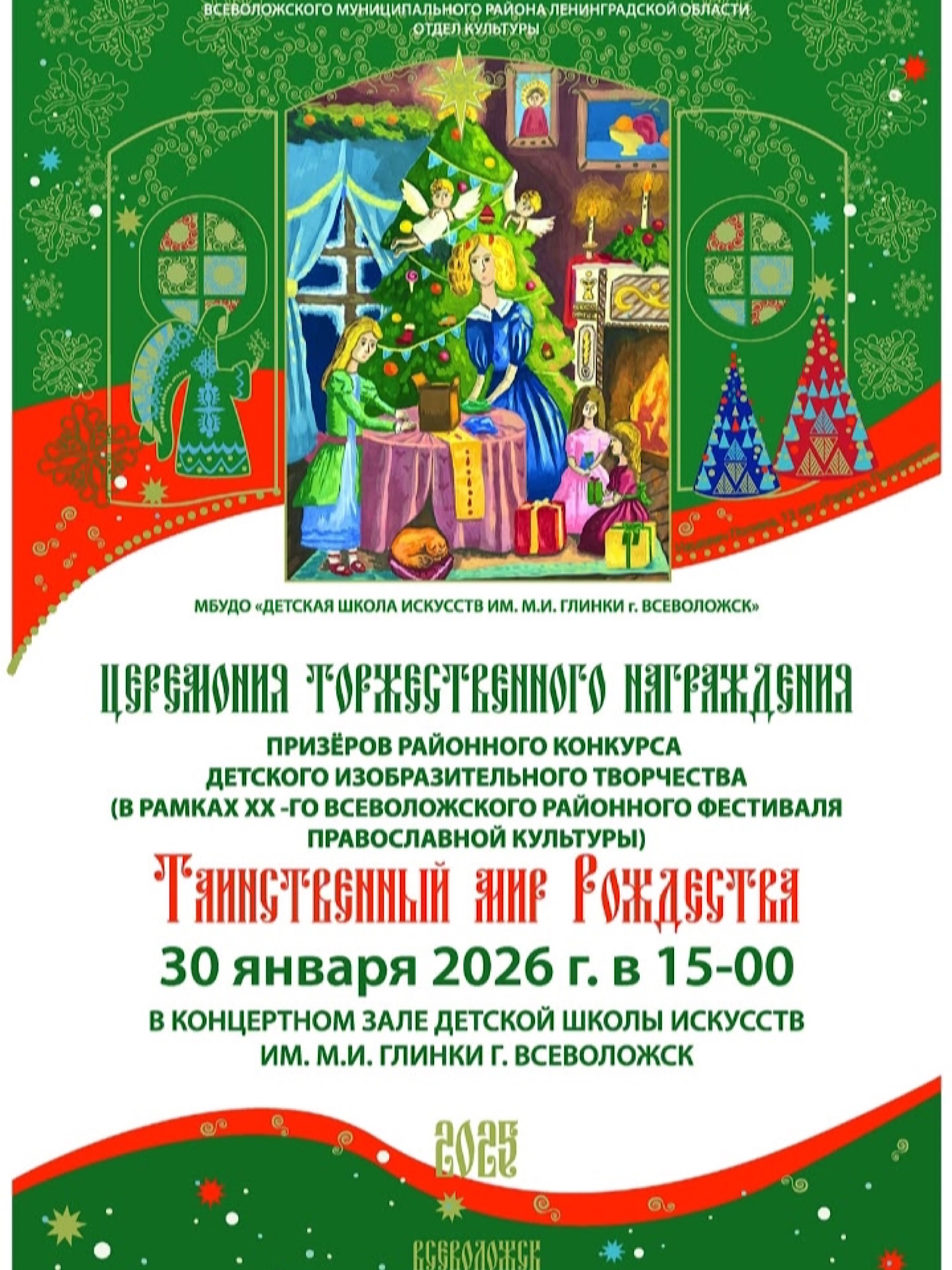 На отделении изобразительного искусства состоялось подведение итогов районного конкурса детского декоративно-прикладного творчества «ТАИНСТВЕННЫЙ МИР РОЖДЕСТВА» 2025 (в рамках XX -го Всеволожского районного фестиваля православной культуры).
