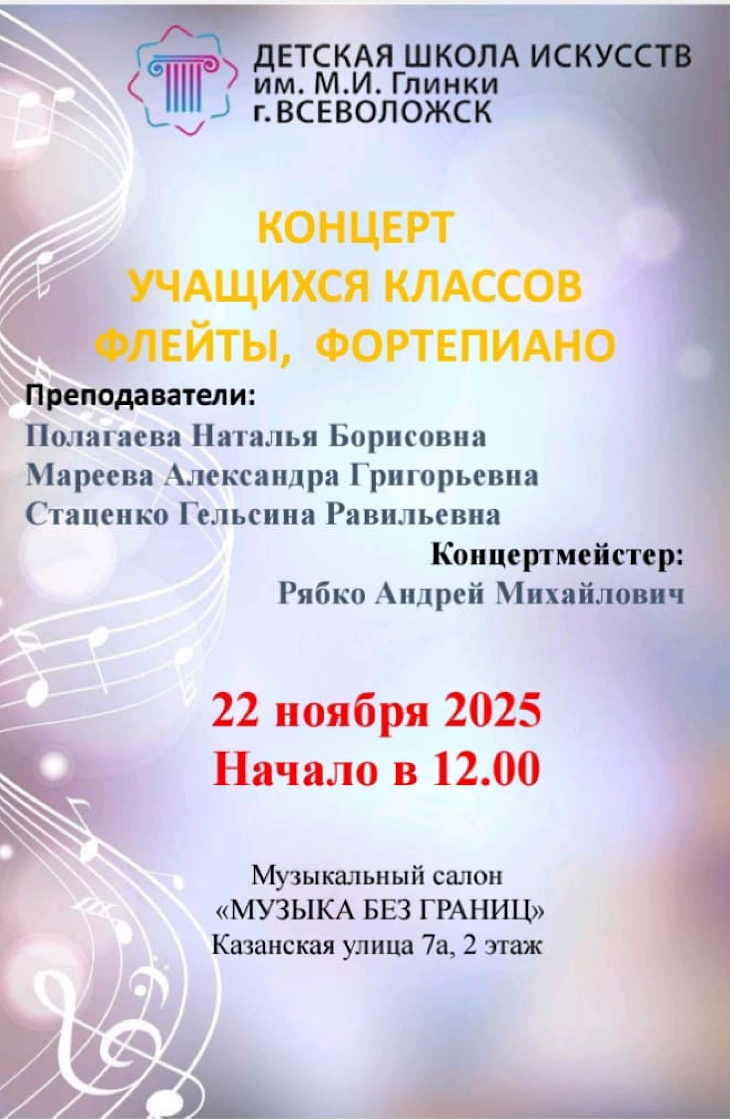 Поздравляем обучающихся МБУДО "ДШИ им. М. И. Глинки г. Всеволожск" с получением диплома стипендиата Суворову